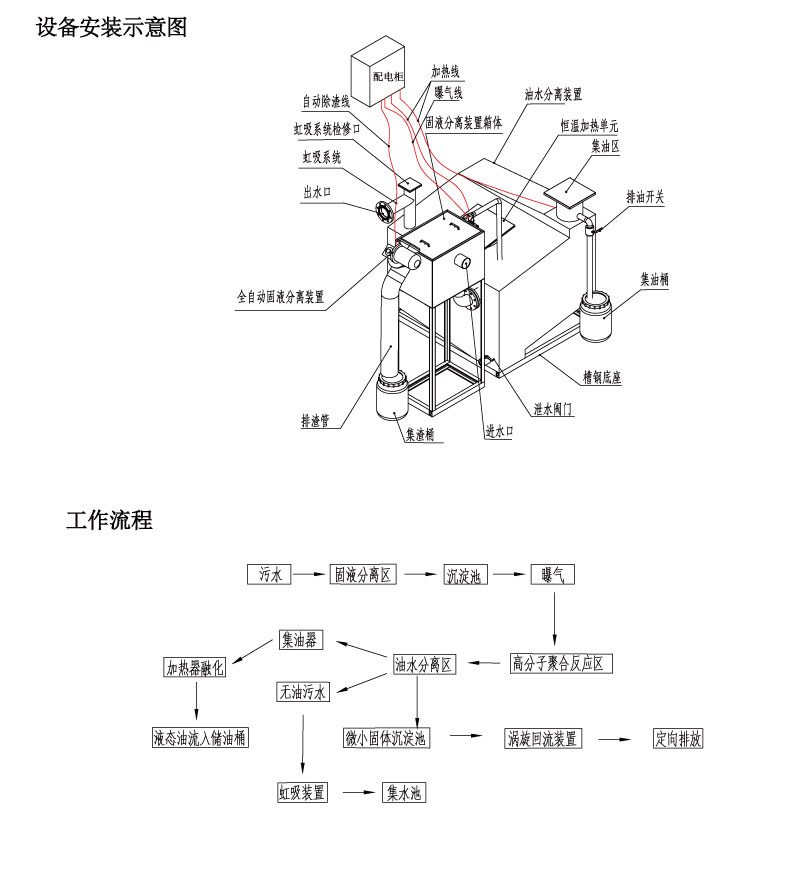 ②设备内部设计有高分子聚合吸附系统,系统形成10μm-30μm的微小气泡,在液体表面张力的作用下,乳化油分子团吸附在气泡上,升至集油区,具有******、自闭软曝气特点,安全性能高。